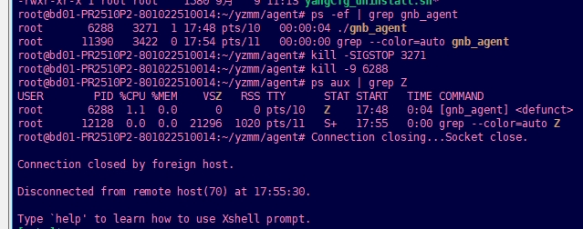 5> 此时gnb_agent就成为僵尸进程,可以通过命令查看:ps aux | grep Z