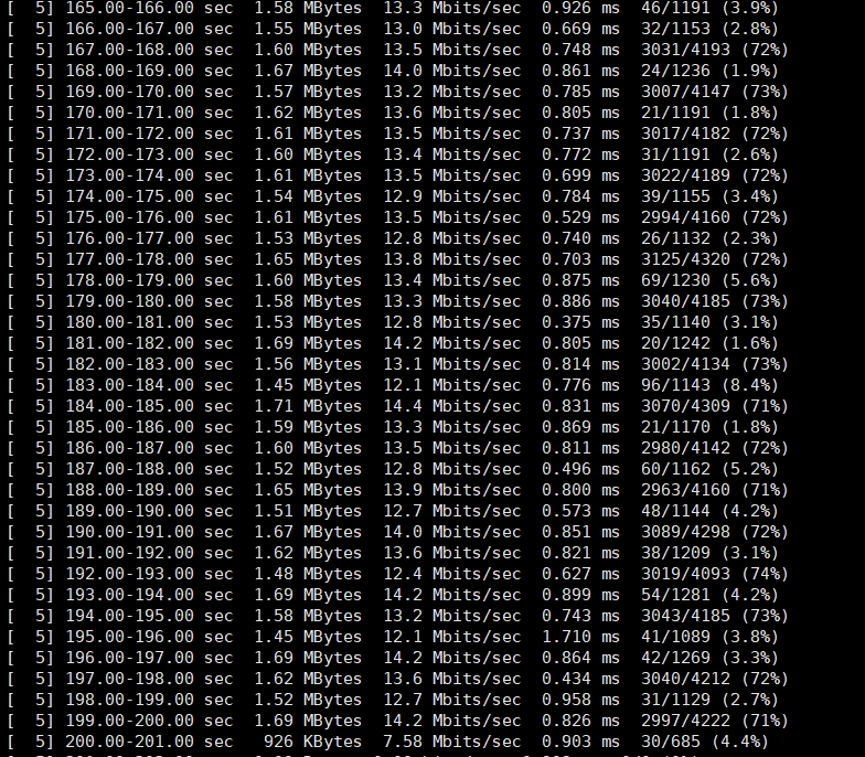 iperf3 -c 60.60.0.100 -t 300 -u -b 100K   -----60.60.0.100修改成你终端获取的IP地址
