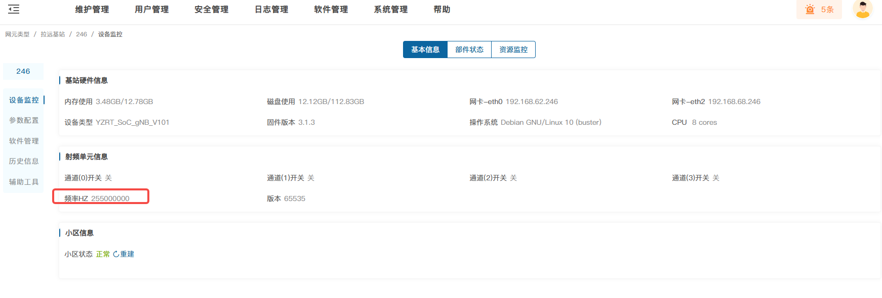 网管版本YZMM2.2.1Pre1T1,射频单元信息中的ru频点不显示