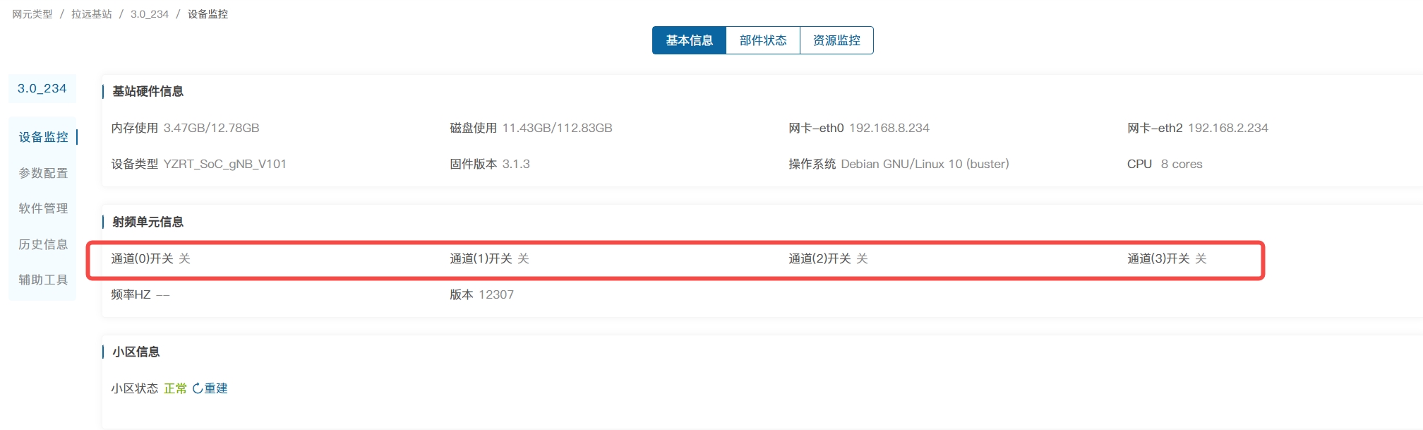 [3.0产品测试] 军特5.8G整机测试,小区启动后,网管上射频单元通道开关,显示为关。
