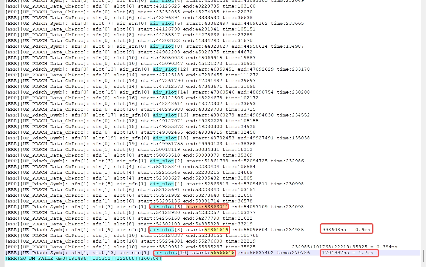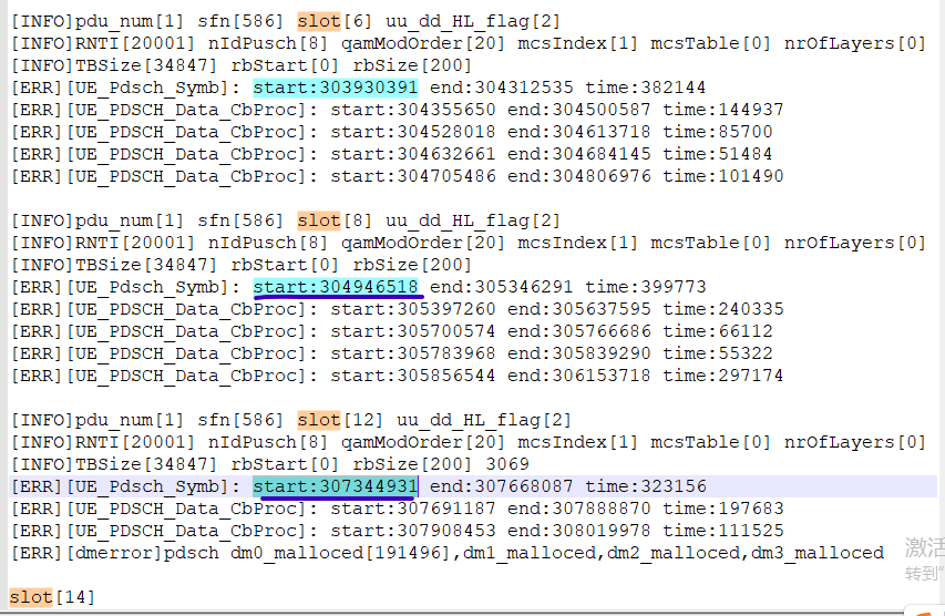 (3)这块的超时导致slot10的任务只完成了sym的处理,bit级正在处理时,(有sym级的打印,没有bit级的打印),然后slot12的任务就被trigger了,导致slot12的DM空间申请不下来,从而挂死
