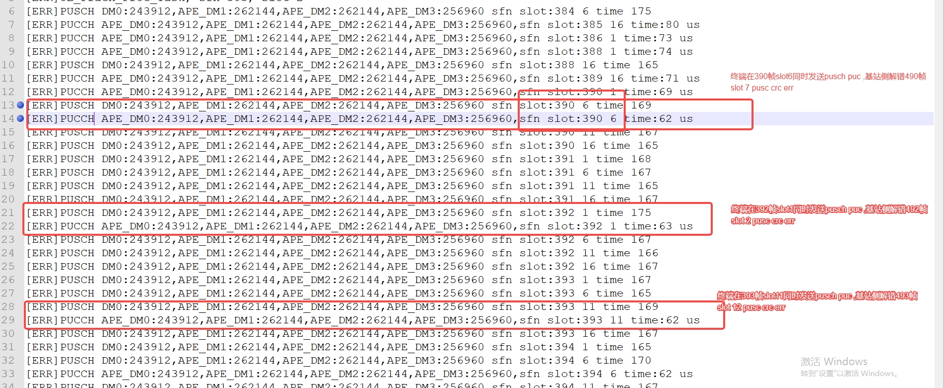 1 30环境下上行灌包15M1D3U环境下,出现PUSCH CRC 6%误包,定位PUSCH PUC 同slot发送,基站侧对应slot的PUSCH全错误,屏蔽掉PUSC PUC buffer清0和优先级调整代码后,误包降低为1%。