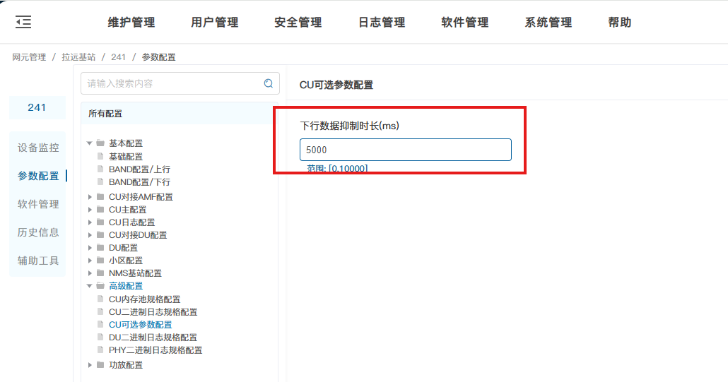 <ConfigItem name="/yzmm/gnb/cu/config/gnb_config.txt:UP_SHM_CONFIG/DISCARD_DL_DATA_TIME" isShow="1" showName="下行数据抑制时长(ms)" canEdit="1" showType="" range="[0,10000]" assoc="" isNum="1" length="" isKey="" fileType=".ini" xpath="/yzmm/gnb/cu/config/gnb_config.txt:UP_SHM_CONFIG/DISCARD_DL_DATA_TIME"></ConfigItem>