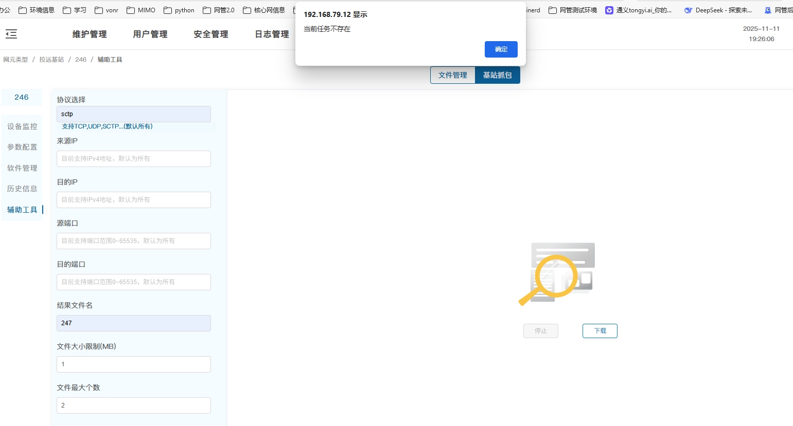 网管版本2.2.5版本,基站3.1.3T8版本抓包“当前任务不存在”