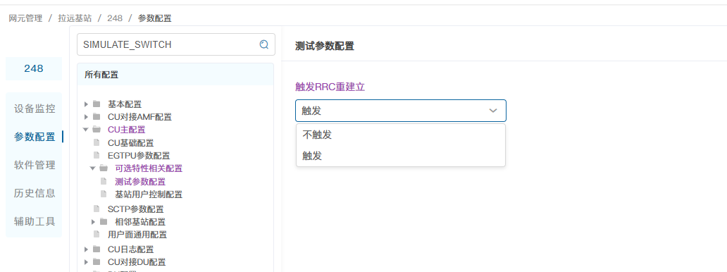 3.1.4版本增加配置项测试参数配置"触发RRC重建立"