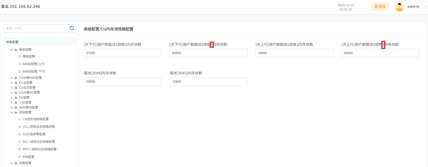 网管版本2.2.5版本,基站版本3.1.4,修改“用户数据池1规格3内存块数”为“用户数据池1规格2内存块数”