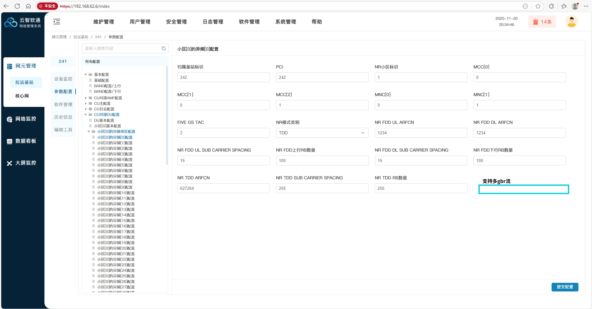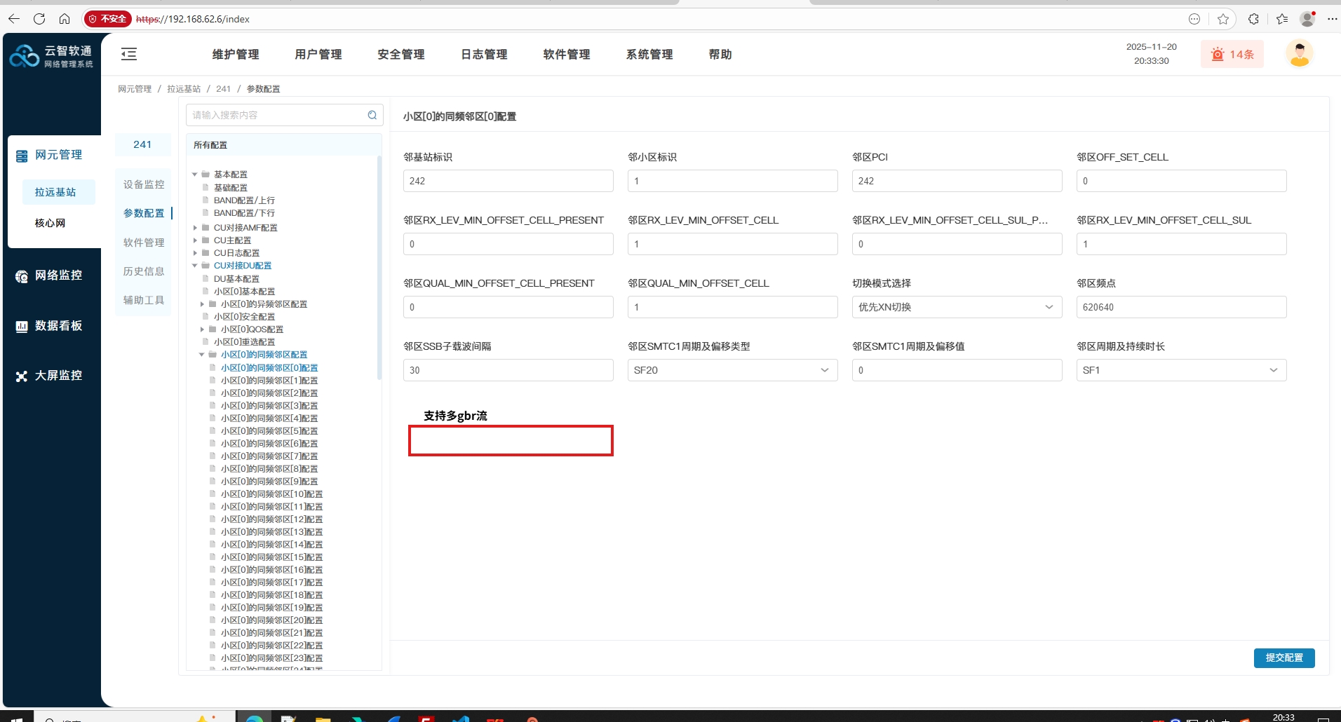 在基站的同频和异频邻区列表显示是否支持多gbr流的标签