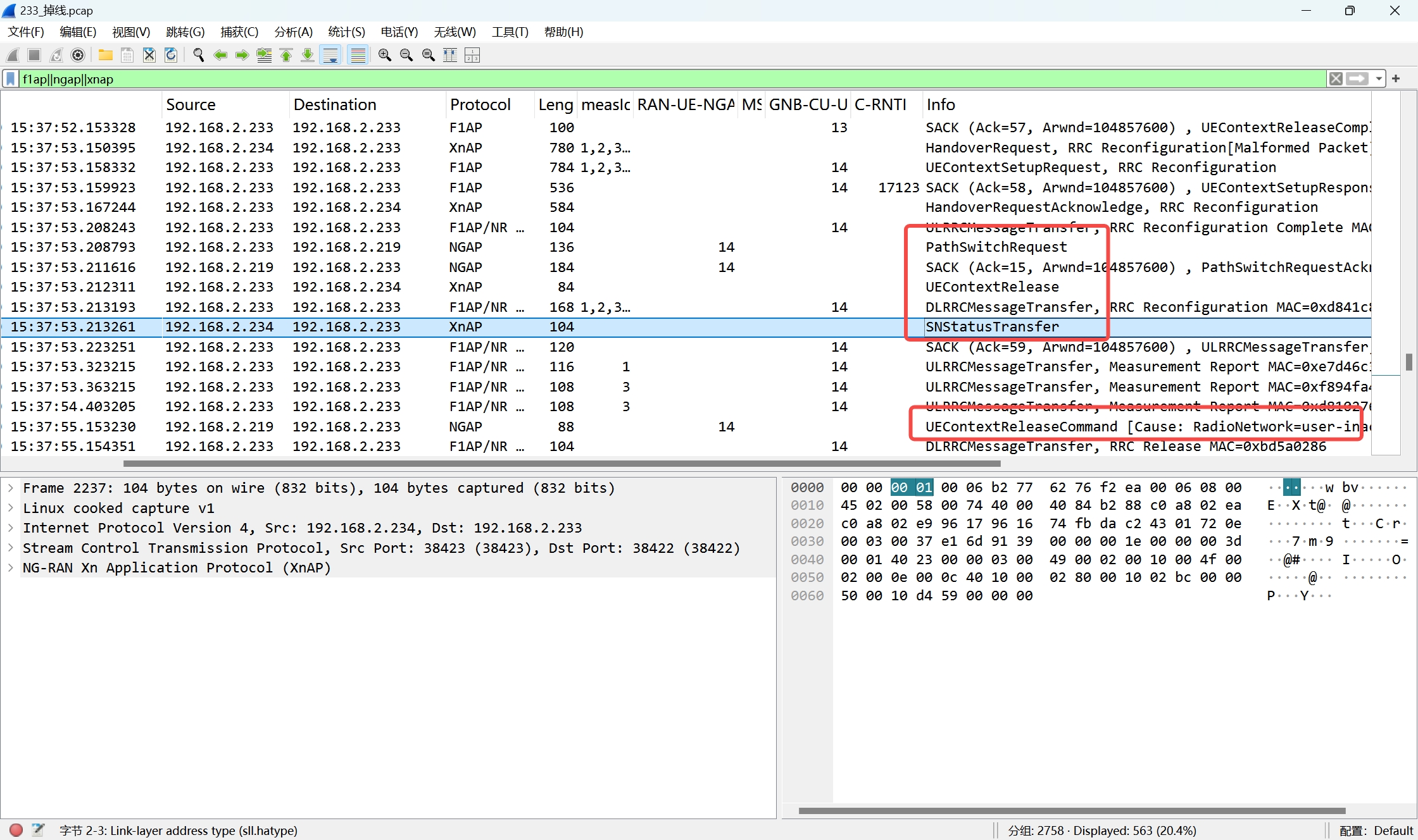 问题描述:终端接入233后,在两个站来回切换20次左右,在233出现了掉线
