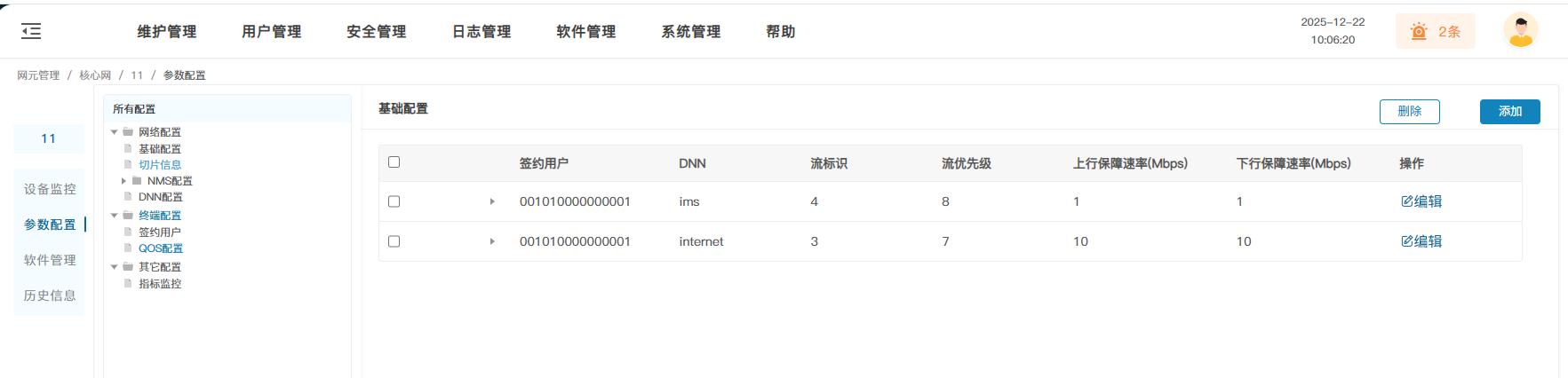 3.页面支持GbrQos配置修改、创建、删除操作;