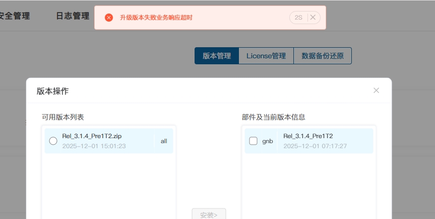 问题定位:实际整个安装过程耗时超过200s导致前台网管认为超时;解决方法:超时时间改为600s