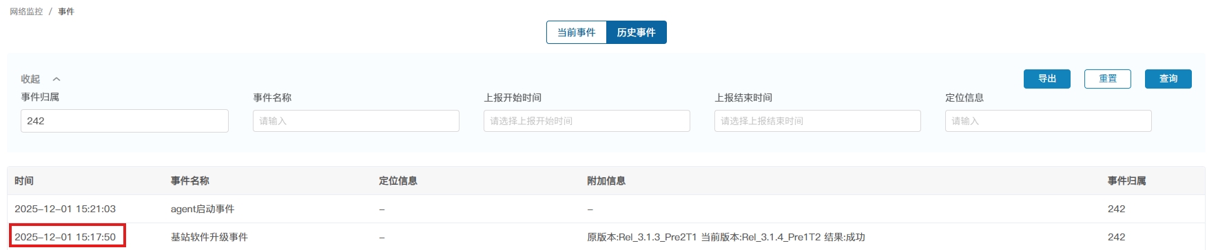 网管版本2.2.6,基站版本3.1.3pre2T1升级3.1.4pre1T2,事件上报升级成功,界面响应超时