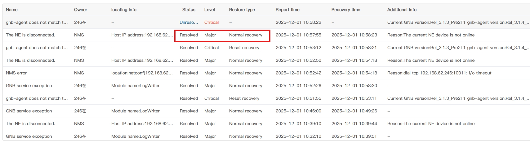 网管YZMM2.2.4Pre1T1英文版本,历史告警相关恢复英文不一致