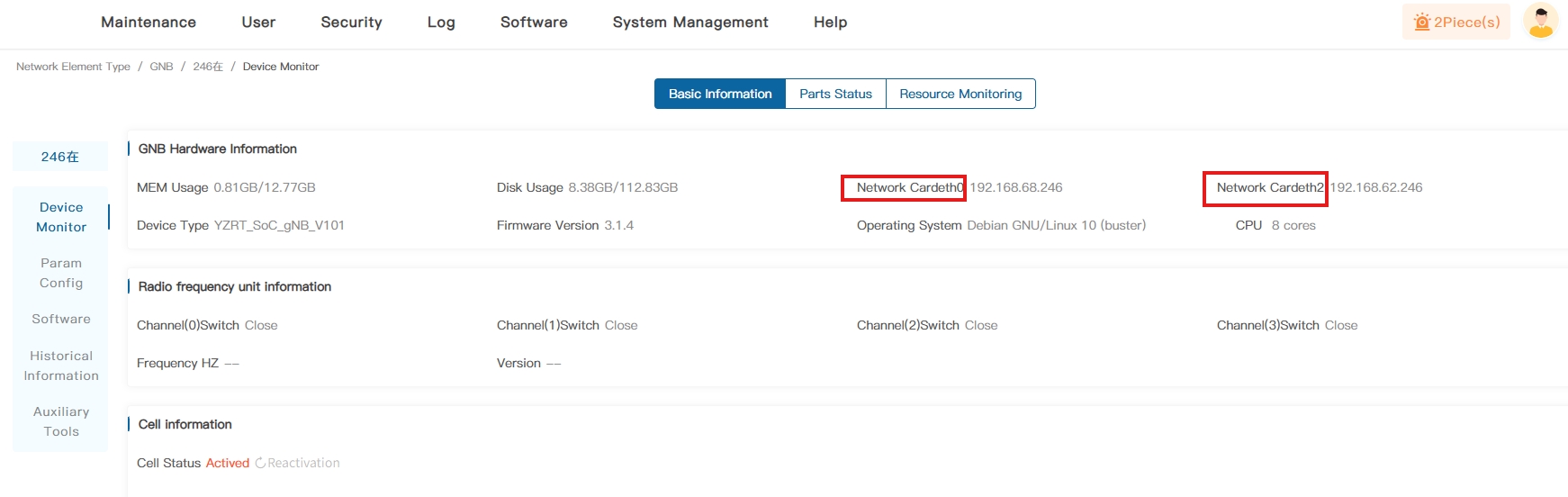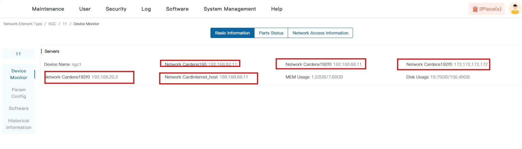 网管YZMM2.2.4Pre1T1英文版本, 基站和核心网的网卡显示需要加空格