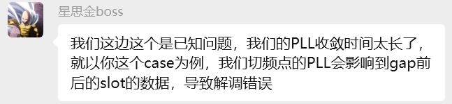 我们在实测中发现:slot 319, slot0到slot12这14个slot空口都解不对(感觉gap的持续时间是14个slot)。