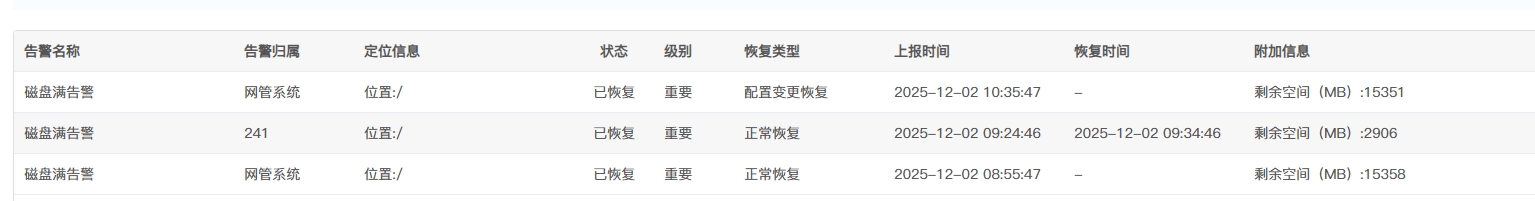 网管版本2.3.0pre1T1版本,网管中baseservice上报的告警恢复无恢复时间