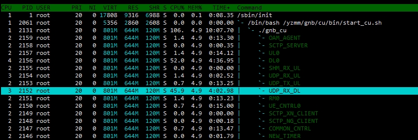 1、下行峰值灌包前后两个版本cu的线程cpu使用率对比