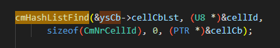 ysCellCb小区hash查找失败问题;只有单小区,不需要hash查找。