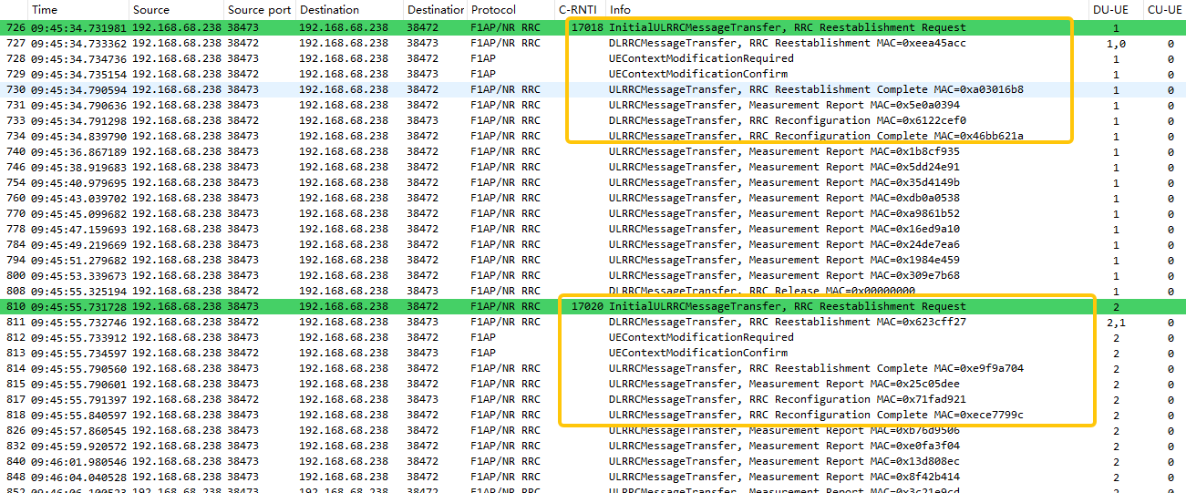 分析:此场景让新UE继续流程往下走,大概率会收到DU新UE上下文释放请求。如果一直走到重配未收到DU对该新UE释放的请求,