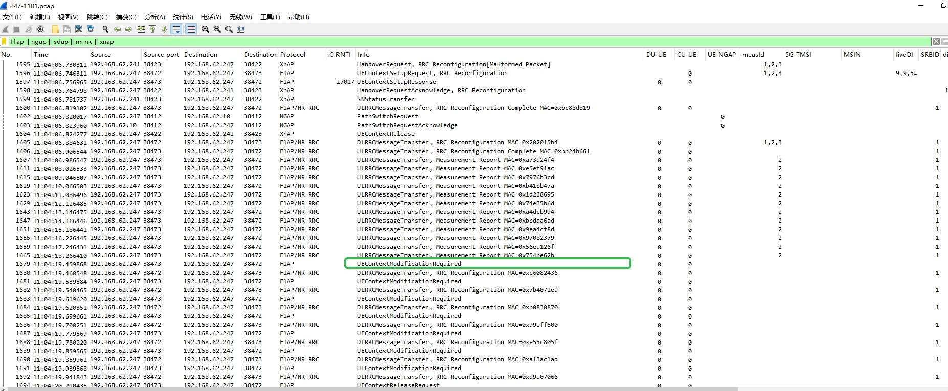 基于3.1.4pre1T4版本,替换gnb_du包,vonr语音时可同频xn切换到目标基站,可多次xn与ng切换,切换流程正常,未出现UEContextModificationRequired消息,终端未掉线,问题解决。