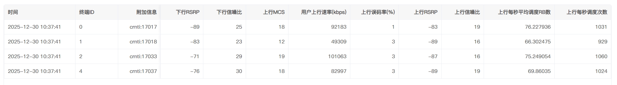 测试场景:基站启动正常,4UE接入上行分别灌包200M