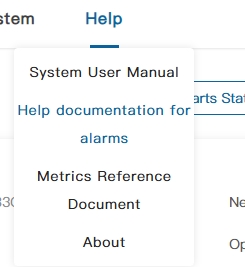 英文网管YZMM2.2.6Pre1T1版本优化system和help子菜单备注:System Manual Alarms Document Metrics Document About
