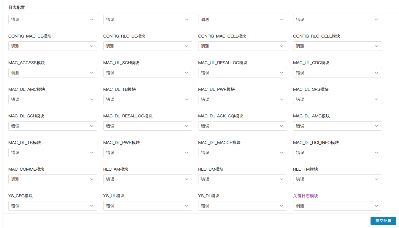<ConfigItem name="ZLOG_MODULE_TYPE/KEY_INFO_MODULE" isShow="1" showName="关键日志模块" canEdit="" showType="Combo" range="0=>不记录,1=>致命,2=>错误,3=>警告,4=>调测,5=>信息,6=>记录" isNum="" length="" isKey="" xpath="/gnb-du:GNB-DU/DU_ZLOG_CONFIG/ZLOG_MODULE_TYPE/KEY_INFO_MODULE"></ConfigItem>