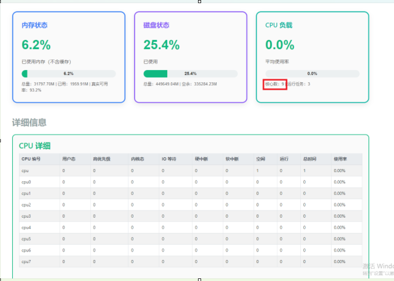 硬件资源信息里的CPU负载的CPU核心数应该是8,不是9