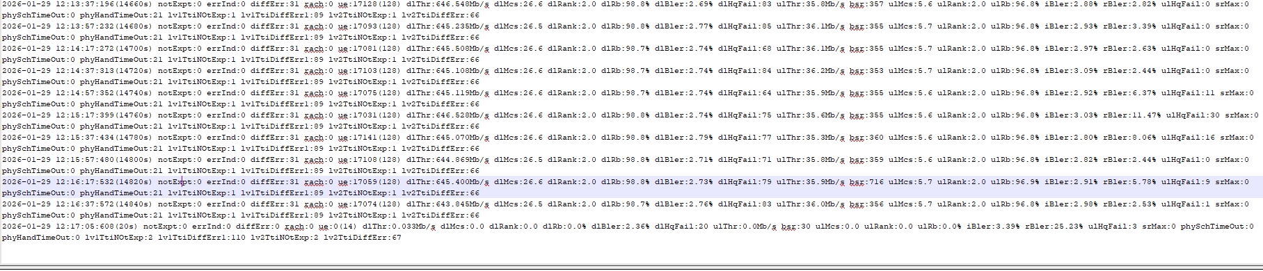 简述:【E500_128ue】Rel_3.1.5_Pre1T2,171环境,7D2U 128ue 上下行同时udp长跑,du core dump