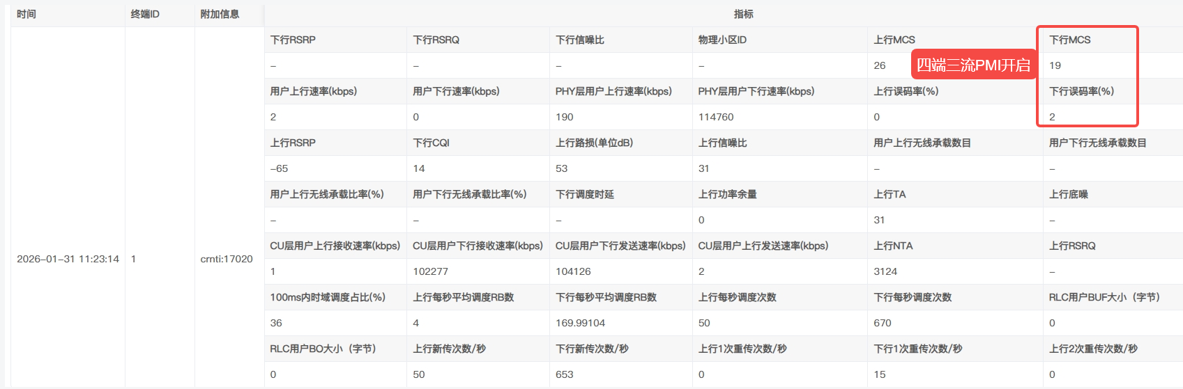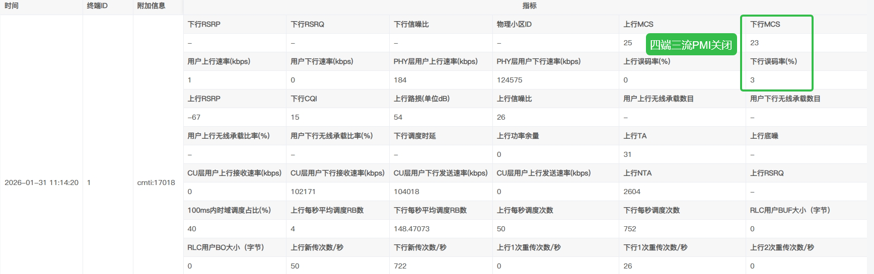3.1.5pre1T2版本下行四端三流配置开启PMI自适应后MCS降低