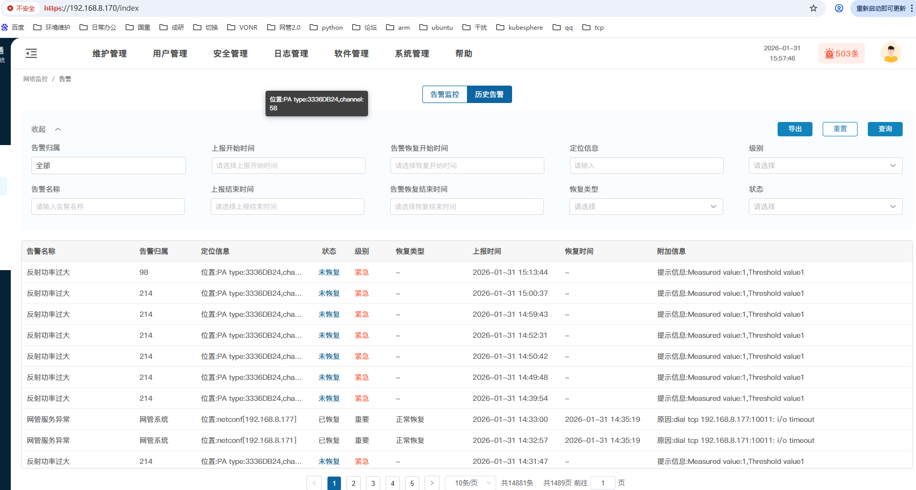网管版本YZMM2.4.0Pre1T1,告警优化显示备注:1)选择某个超长字段,点击右键移动鼠标,该字段会移动到其他位置,并且不消失