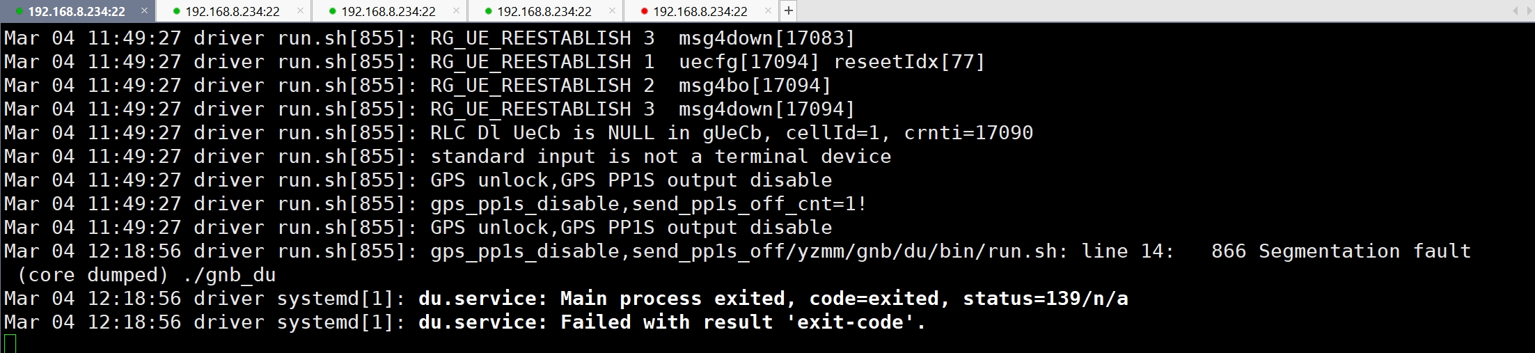 [3.0产品测试] 4UE压力测试中,du出现挂死