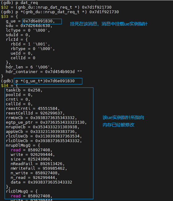 后通过core文件记录到的nrupDlMsgQ环形队列中信息,确认释放UE=0x7d6e091830的rnti为17116
