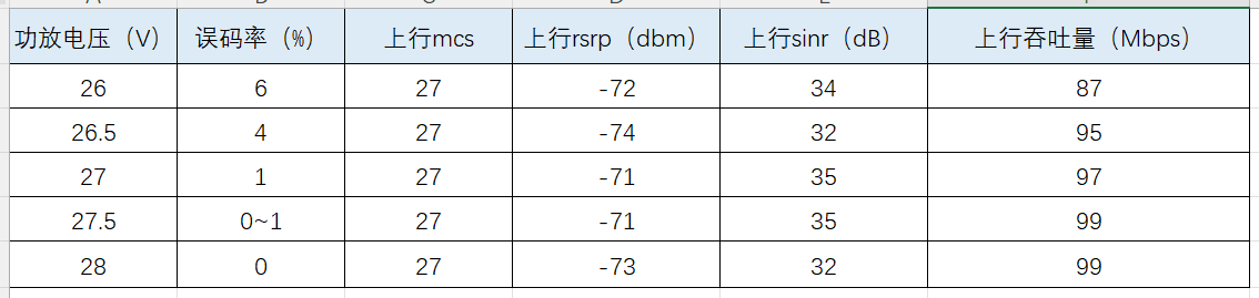 通过对 26V 至 28V 区间的功放电压进行实测,记录显示: