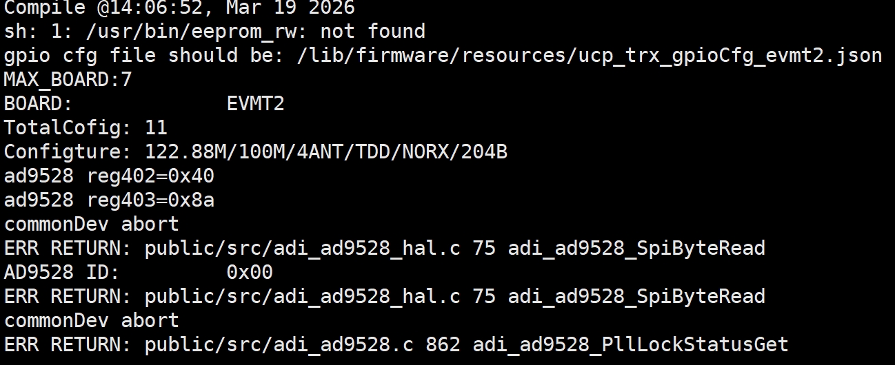 B5g终端程序启动时,发生ERR RETURN: public/src/adi_ad9528.c,怀疑8a34的时钟未锁定